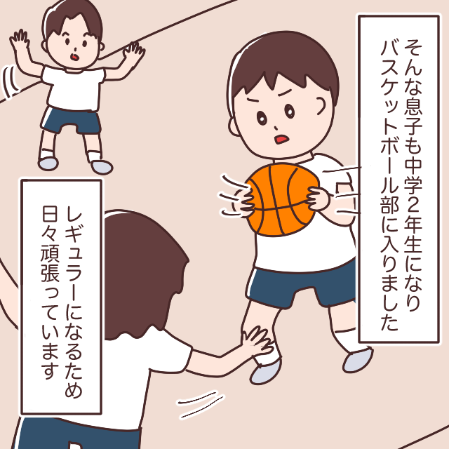 そんな息子も中学2年生になりました。小学生の頃は毎日なんとなく過ごしているように見えたけど、中学生になってからは勉強に部活に恋愛にと、自分のペースで日々を楽しんでいるみたいです。バスケットボール部に入って、レギュラーを目指して頑張っている姿を見ると、「大きくなったなぁ」としみじみ感じます。