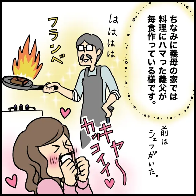 ちなみに義実家では、以前はシェフが毎日の料理を作っていたようですが、今は料理にハマった義父が毎食作るようになったそうです。ゴージャスなキッチンで、最高級の料理道具を使い、高級食材で作る義父の料理。こだわりもすごそうです。