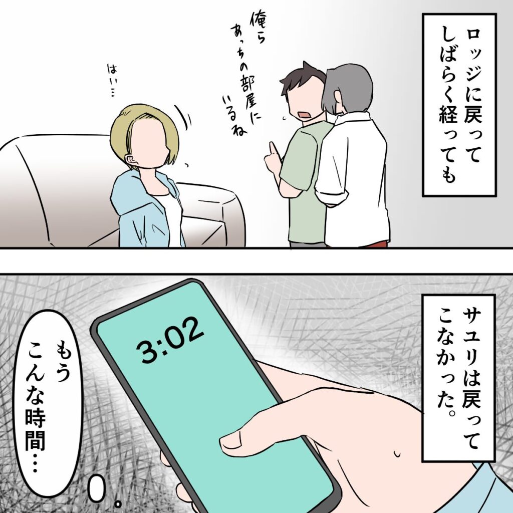 その後、ロッジに戻ってしばらく経っても戻ってこないサユリのことが心配だった私。その時、時計はもう深夜3時を示していました。