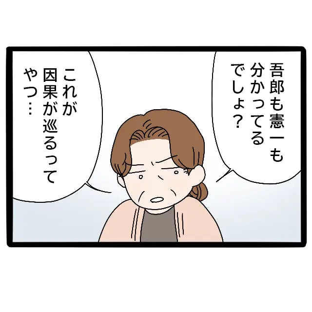 その後、「吾郎も憲一も分かってるでしょ?これが因果が巡るってやつ・・」千恵おばちゃんは父と兄に向って、当然分かっているはずだと言わんばかりの言葉を投げかけました。