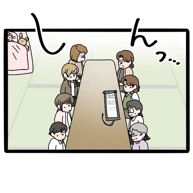 その後、一同が集まるもしんと静まった部屋の中。誰も口を開く者はいませんでした。