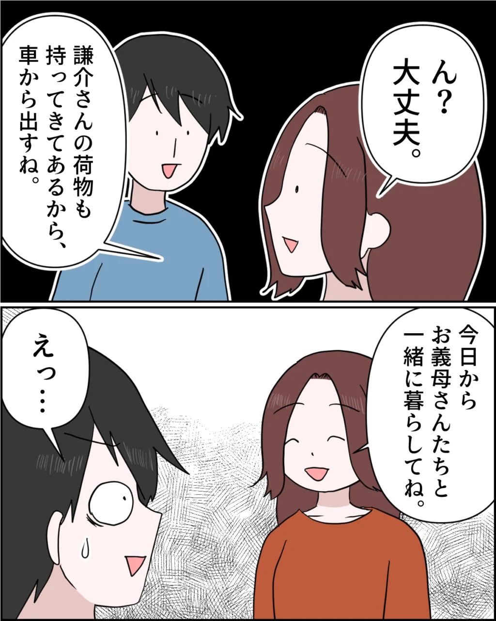 私は謙介に向かって「ん?謙介さんの荷物も持ってきてあるから車から出すね、今日からお義母さんたちと一緒に暮らしてね」と、笑顔で告げます。すると「えっ」と目を見開く謙介。あれほどのことをしておいて、なぜこれからも私たちと一緒に暮らせると思っているのでしょうか・・・むしろそう考えていたことに、私のほうが驚いてしまいます。