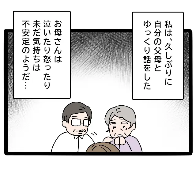 その晩、私は久しぶりに自分の父母とゆっくり話をしました。話している間母は泣いたり怒ったり、未だに気持ちは不安定のようです。