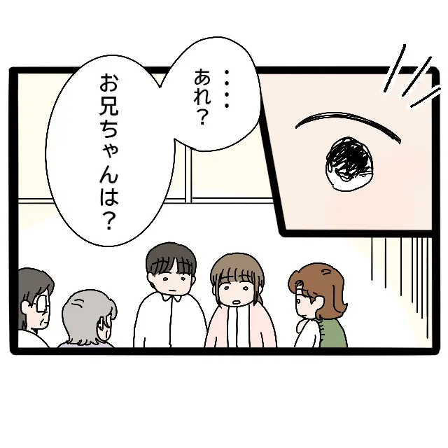 おばさんを見送ったのち、私はあることに気が付きました。「あれ?お兄ちゃんは?」兄がいなくなっていることに誰も気づいていませんでした。
