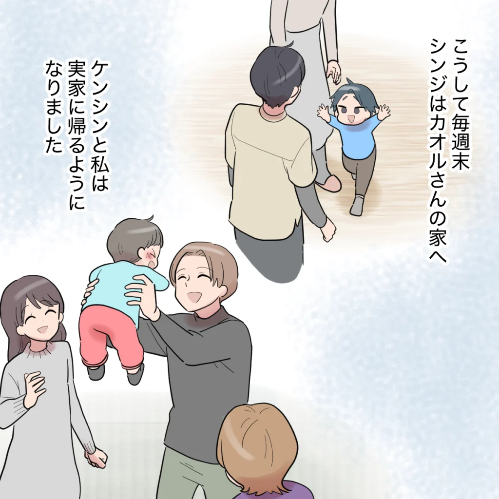 こうして、毎週末シンジはカオルさんの家へ、ケンシンと私は実家に帰るようになったのでした。