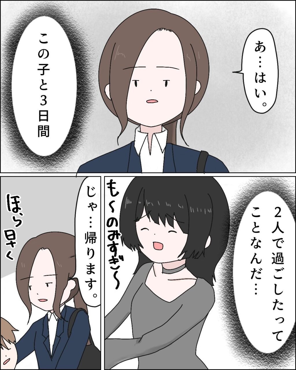 彼女の言葉を聞いた瞬間、レイはこの子と3日間、2人きりで過ごしていたのだと理解しました。家から800キロも離れた道のりを、車内はずっと2人だけ。その事実が重く胸にのしかかり、私は6時間もかけてここへ来てしまったことを心から後悔しました。