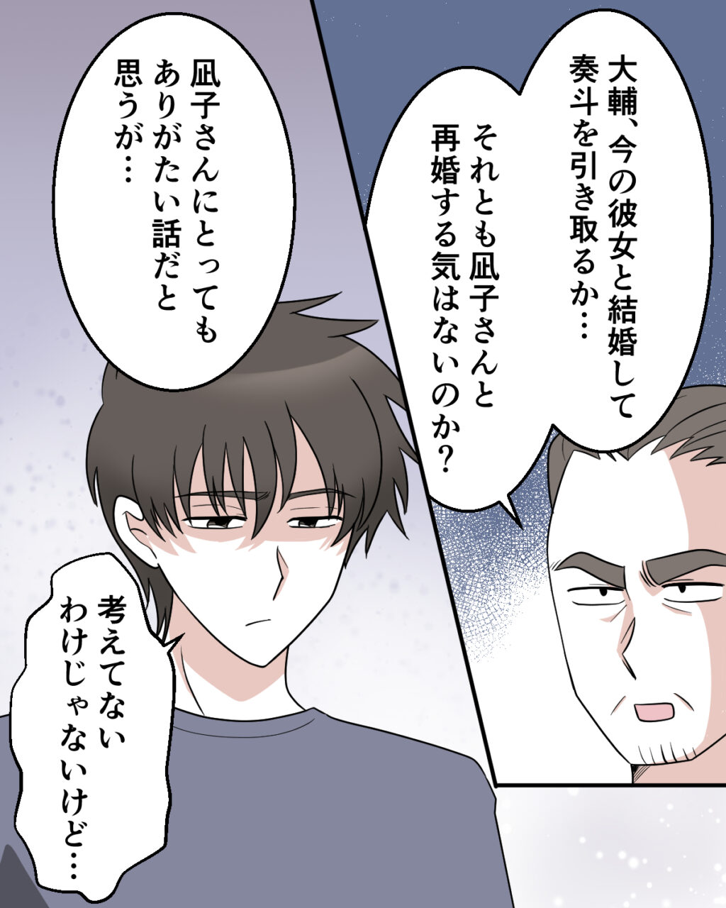 「大輔、今の彼女と結婚して奏斗を引き取るか・・それとも凪子さんと再婚する気はないのか?凪子さんにとってもありがたい話だと思うが・・」父さんにそう言われ、俺は「考えてないわけじゃないけど・・」とぼそり。俺だって、可愛い奏斗と一緒に暮らしたいし凪子を助けたい気持ちもあります。