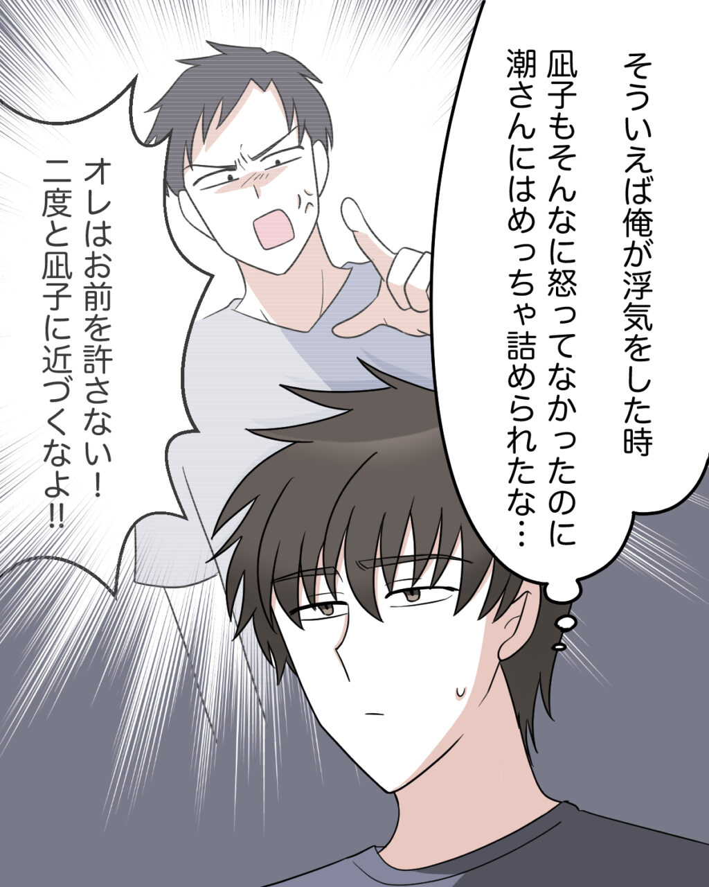 「そういえば俺が浮気をした時、凪子もそんなに怒ってなかったのに潮さんにはめっちゃ詰められたな・・」俺は離婚するときに潮さんから「オレはお前を許さない!二度と凪子に近づくなよ!!」と怒鳴られたことを思い出しました。