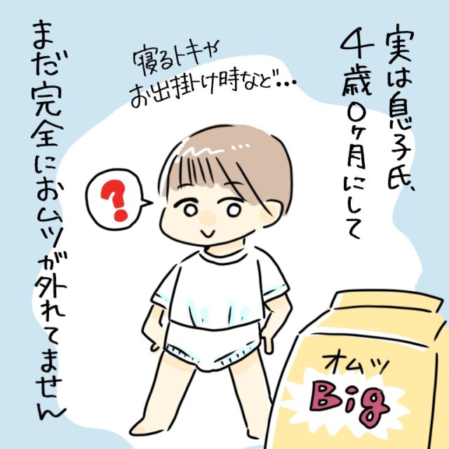 実は息子氏、4歳0ヶ月にして、寝るときやお出掛け時などはまだ完全にオムツが外れてません。