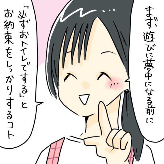 そして、「まず、遊びに夢中になる前に『必ずおトイレでする』とお約束をしっかりすること』