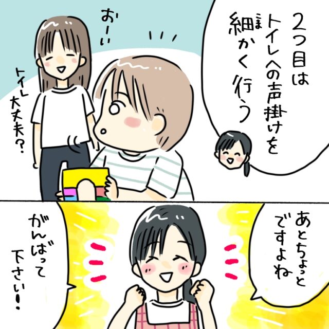 「2つ目は、トイレへの声掛けを細かく行う」と、2つのことを教えてくれました。