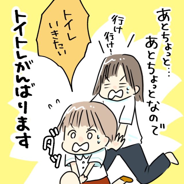 遊びに夢中になってトイレに行きたい気持ちを忘れてしまうのは小学生のうちの息子も同じです(笑)あーちゃんのトイトレのゴールはもうすぐですね!応援しています!