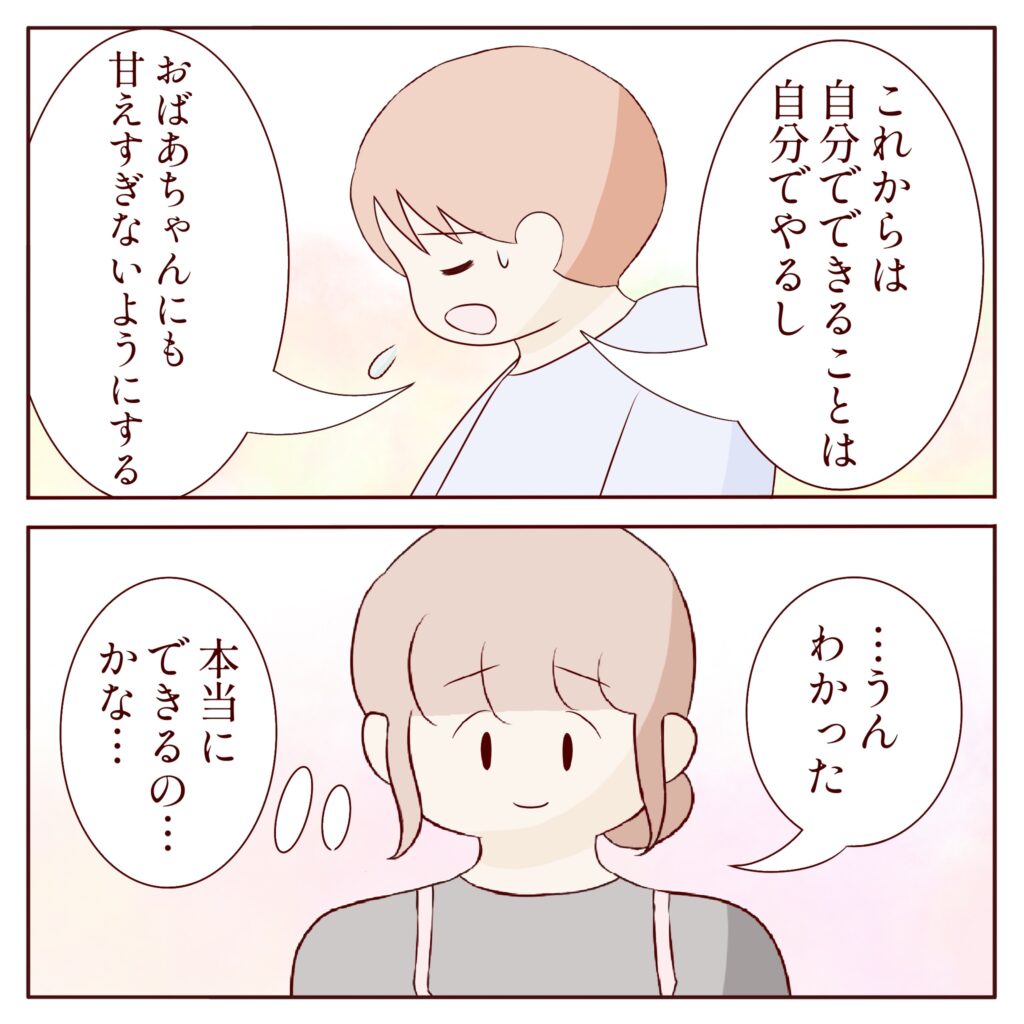 「これからは自分でできることは自分でやるし、おばあちゃんにも甘えすぎないようにする」カナコさんの言葉が効いたのか、反省した姿勢を見せるリクさん。ヒナさんは「本当にできるのかな・・・」と半信半疑ではありましたが、リクさんが自分の過ちに気付いて素直に謝ってきたのは初めてだったので、彼の言葉を信じることにしました。