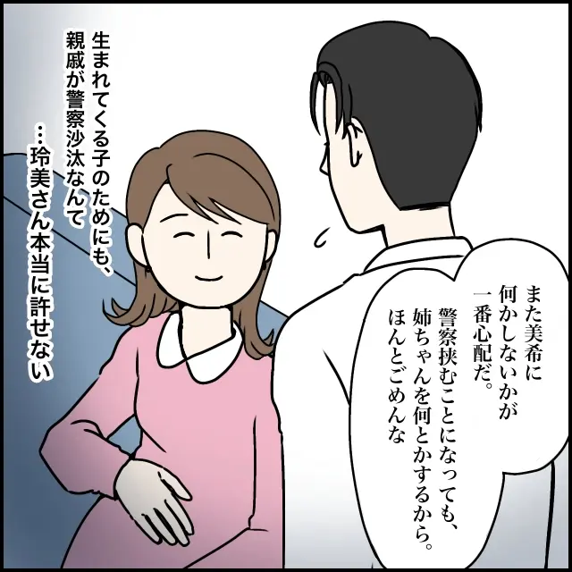 「また美希に何かしないかが一番心配だ。警察挟むことになっても、姉ちゃんを何とかするから。ほんとごめんな」と言ってくれた太一。私のことを一番に考えてくれる太一の言葉を嬉しく思いながらも、親戚が警察沙汰なんて生まれてくる子のためにも絶対に避けたい。もしそんなことになったら・・本当に玲美さんを許せません。