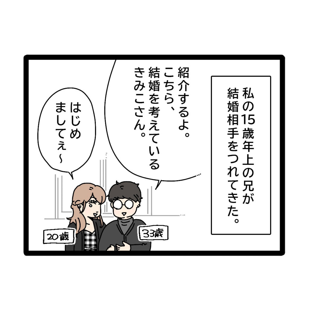 「紹介するよ。こちら、結婚を考えているきみこさん」兄がそう紹介すると、「はじめましてぇ~」と挨拶する、兄よりかなり年下らしい女性が言いました。
