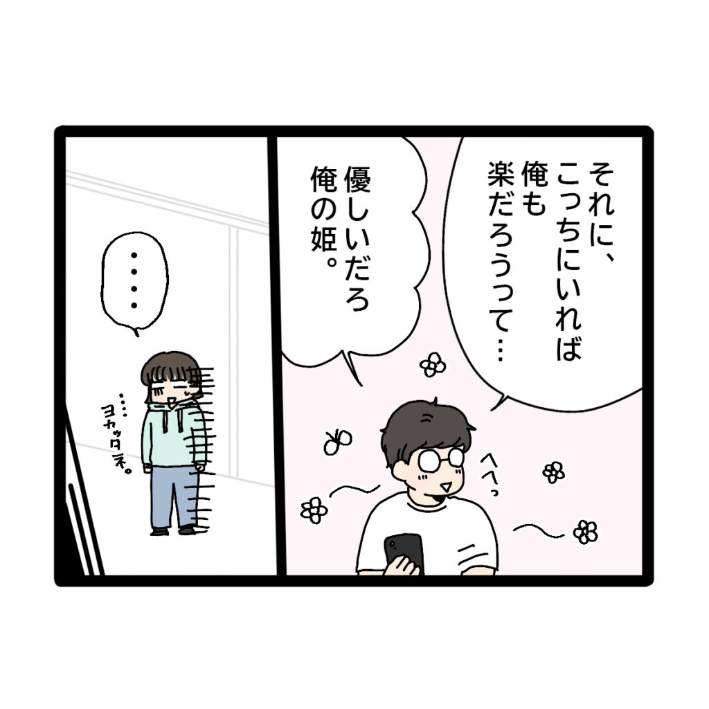 続けて兄は「それに、こっちにいれば俺も楽だろうって・・・優しいだろ俺の姫」と幸せそうに笑いました。私には、兄と妃を思っての発言だとは思えず・・・兄には「ヨカッタネ」としか言えませんでした。