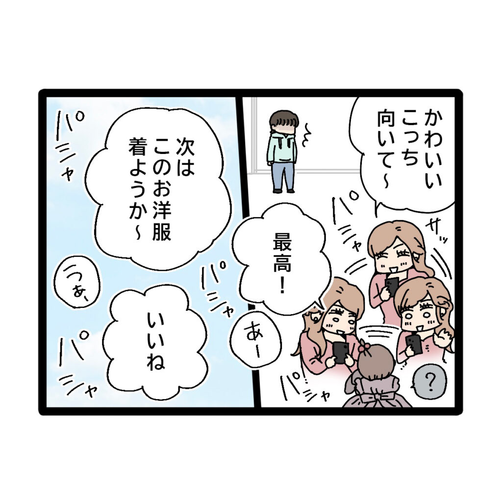 そして始まったSNS用の撮影会。「かわいいこっち向いて~」「最高!」「次はこのお洋服着ようか~」とこの時が一番楽しそうなきみこ。
