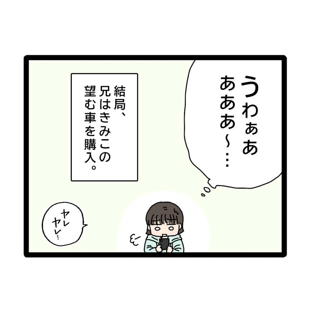 「うわぁああああ~・・」と思わず呟く私。結局、兄はきみこの望む車を購入したのでした。