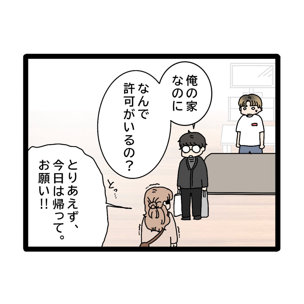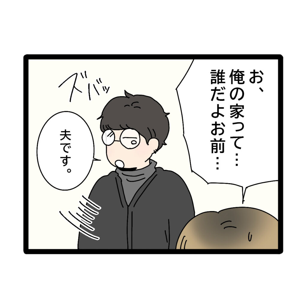 黙って聞いていた謎の男性でしたが兄の「俺の家」という言葉を聞き「お、俺の家って・・・誰だよお前・・・」と言いました。兄はすかさず「夫です。」と答えます。