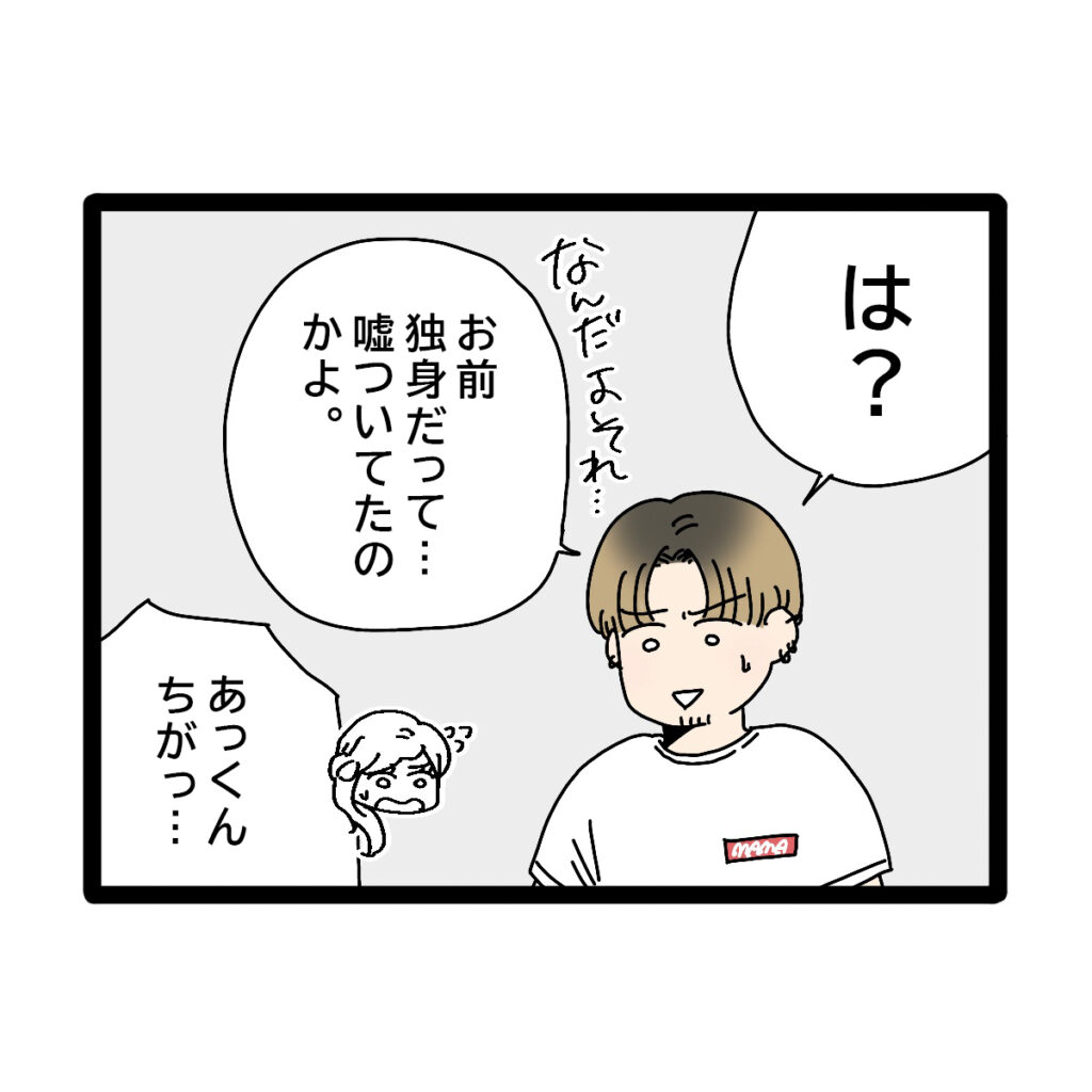 男性は「は?なんだよそれ・・・お前独身だって・・・嘘ついてたのかよ。」と男性はきみこが既婚者だと初めて知ったようでした。男性に既婚者だと知られ、きみこは「あっくんちがっ・・・」と慌てて言い訳をしようとしたのでした。