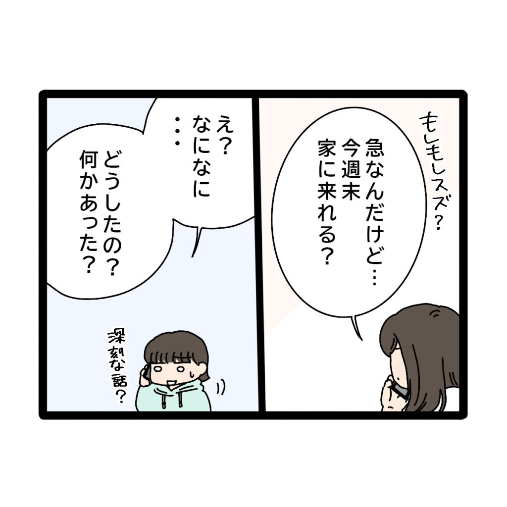 「急なんだけど・・今週末家に来られる?」深刻そうで心配になる