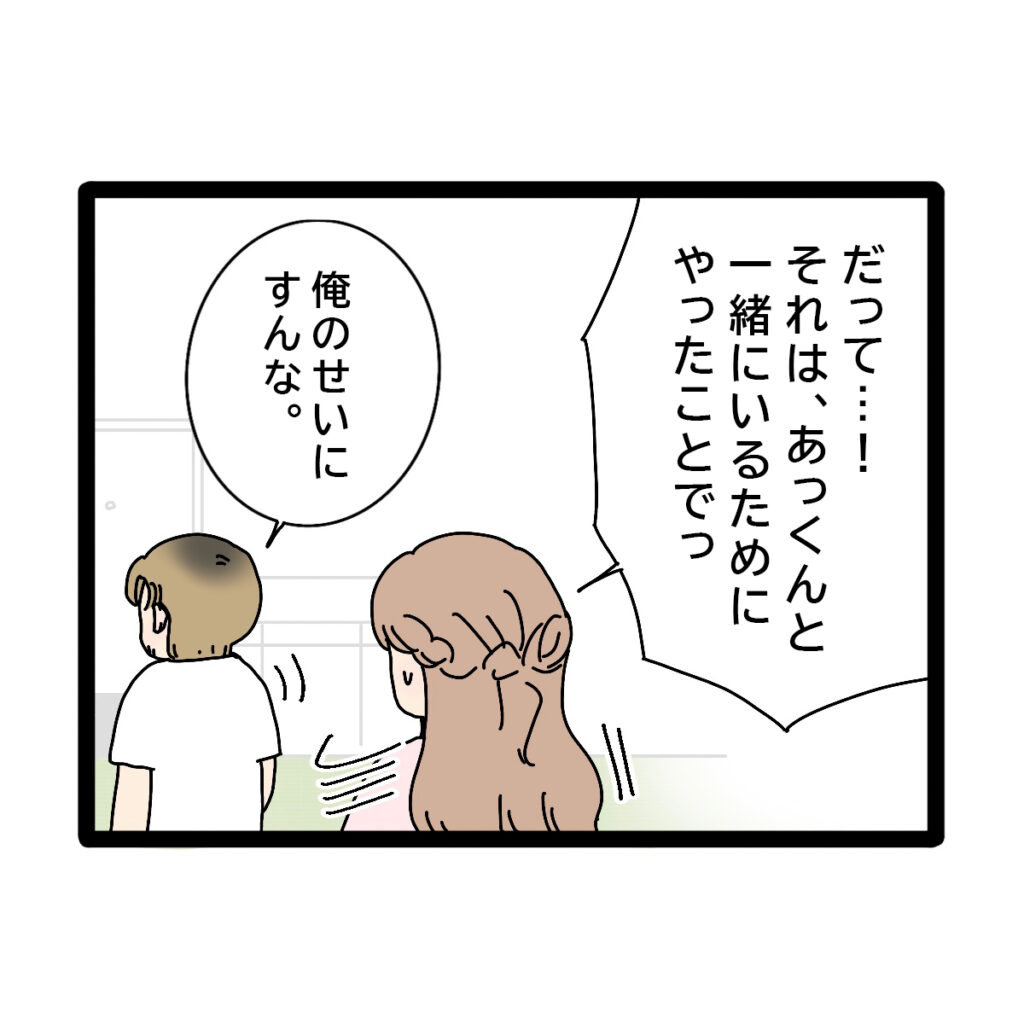 きみこのお腹の子が本当に自分の子なのかと疑うあっくんは、「正真正銘あっくんの子だよ」と言うきみこに「自分のダンナを騙して生活してた奴のことなんて、信用できねー」と言いました。きみこは「だって・・!それは、あっくんと一緒にいるためにやったことでっ」と必死に訴えましたが、あっくんは「俺のせいにすんな」とバッサリ。