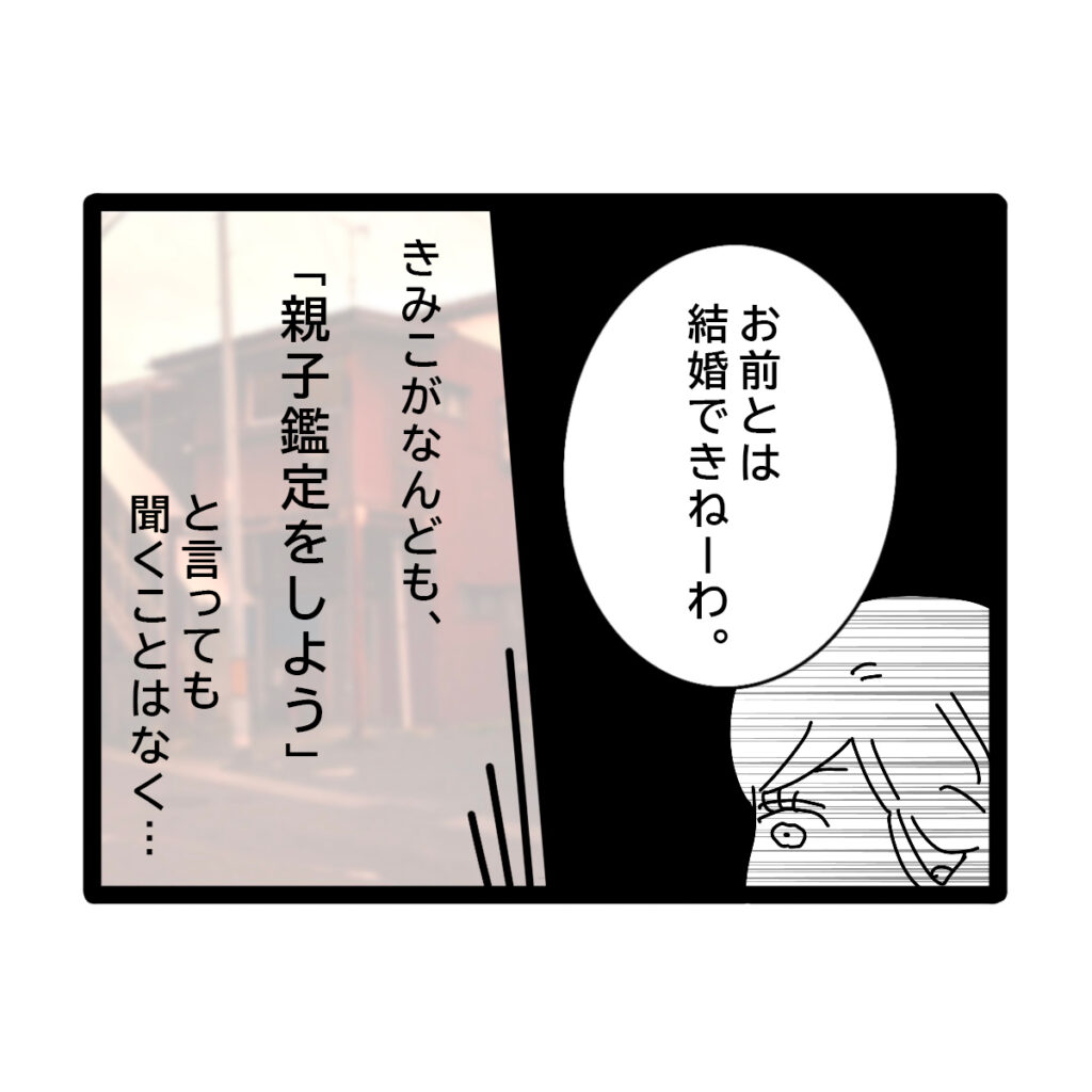 そして、「お前とは結婚できねーわ」と冷たく言い放ったあっくん。まさかの一言に目の前が真っ暗になったきみこは、何度も「親子鑑定をしよう」と提案したものの、あっくんは聞く耳を持ってくれませんでした。