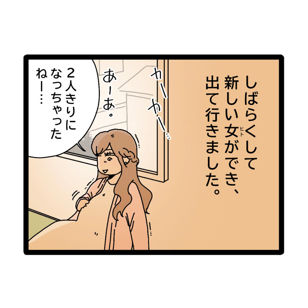 しばらくして、あっくんは新しい女性ができ家を出ていきました。残された身重のきみこは「2人きりになっちゃったねー・・」と震えながらお腹をさすりました。