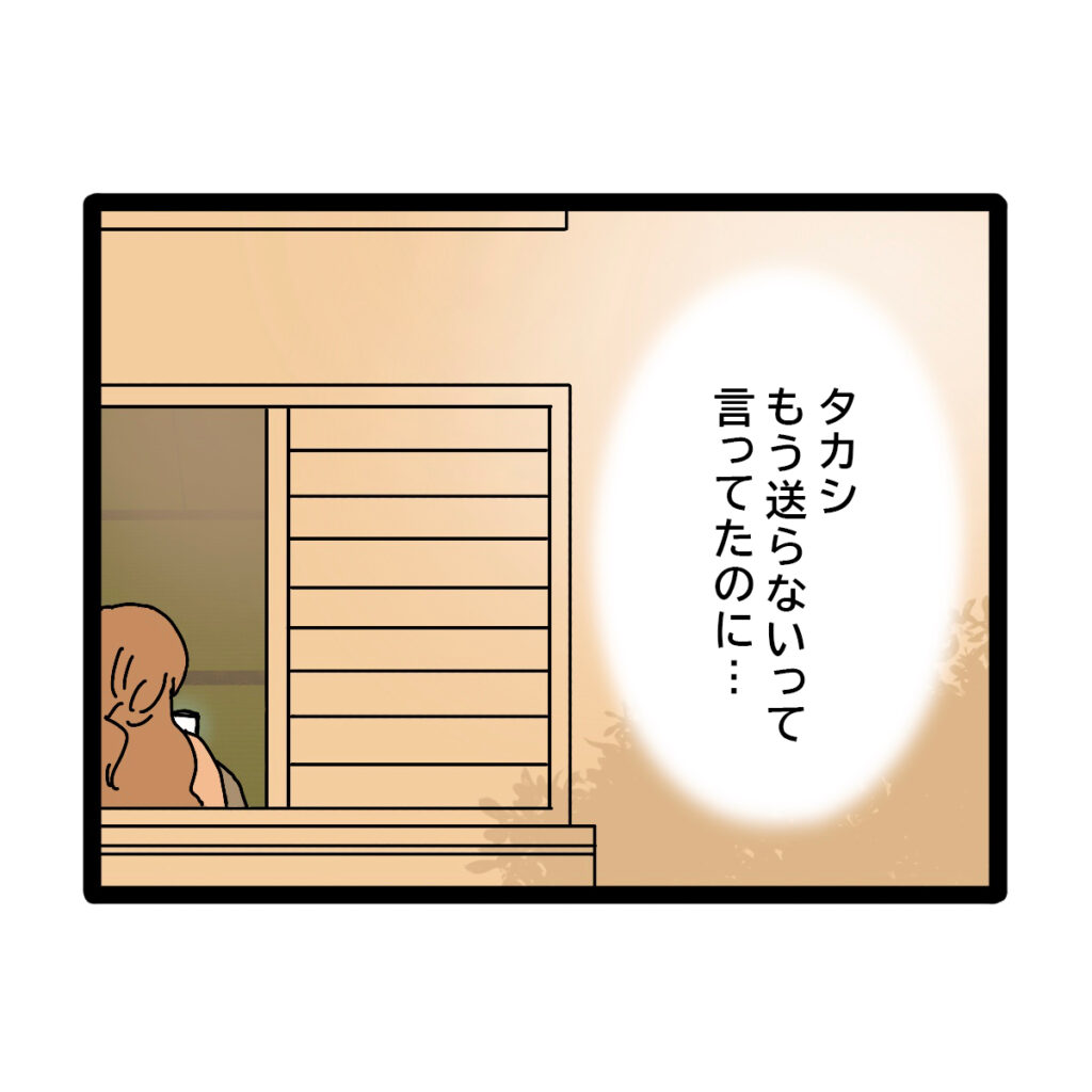 「タカシ、もう送らないって言ってたのに・・」とタカシさんの優しさに胸が熱くなるきみこ。