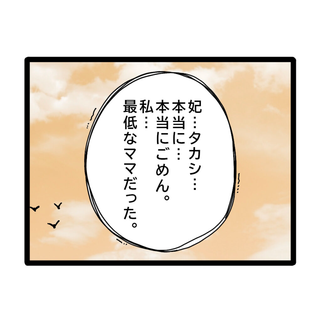 「妃・・タカシ・・本当に・・本当にごめん。私・・最低なママだった」きみこはこのときようやく失ったものの大きさを痛感し、深く深く後悔したのでした。
