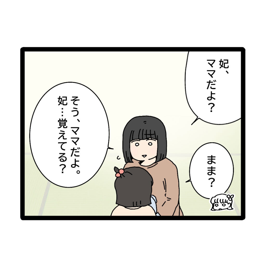 後日、数年ぶりに娘と再会したきみこ。きみこは妃に「妃、ママだよ?」と言うと妃はキョトンとした顔で「まま?」と呟きました。きみこは「そう、ママだよ。妃・・・覚えてる?」と聞きました。