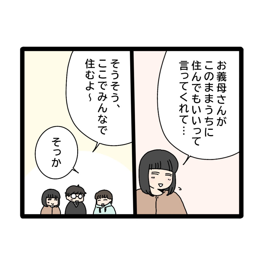 するときみこが「お義母さんがこのままうちに住んでもいいって言ってくれて・・・」と言いました。兄も「そうそう、ここでみんなで住むよ~」と教えてくれました。