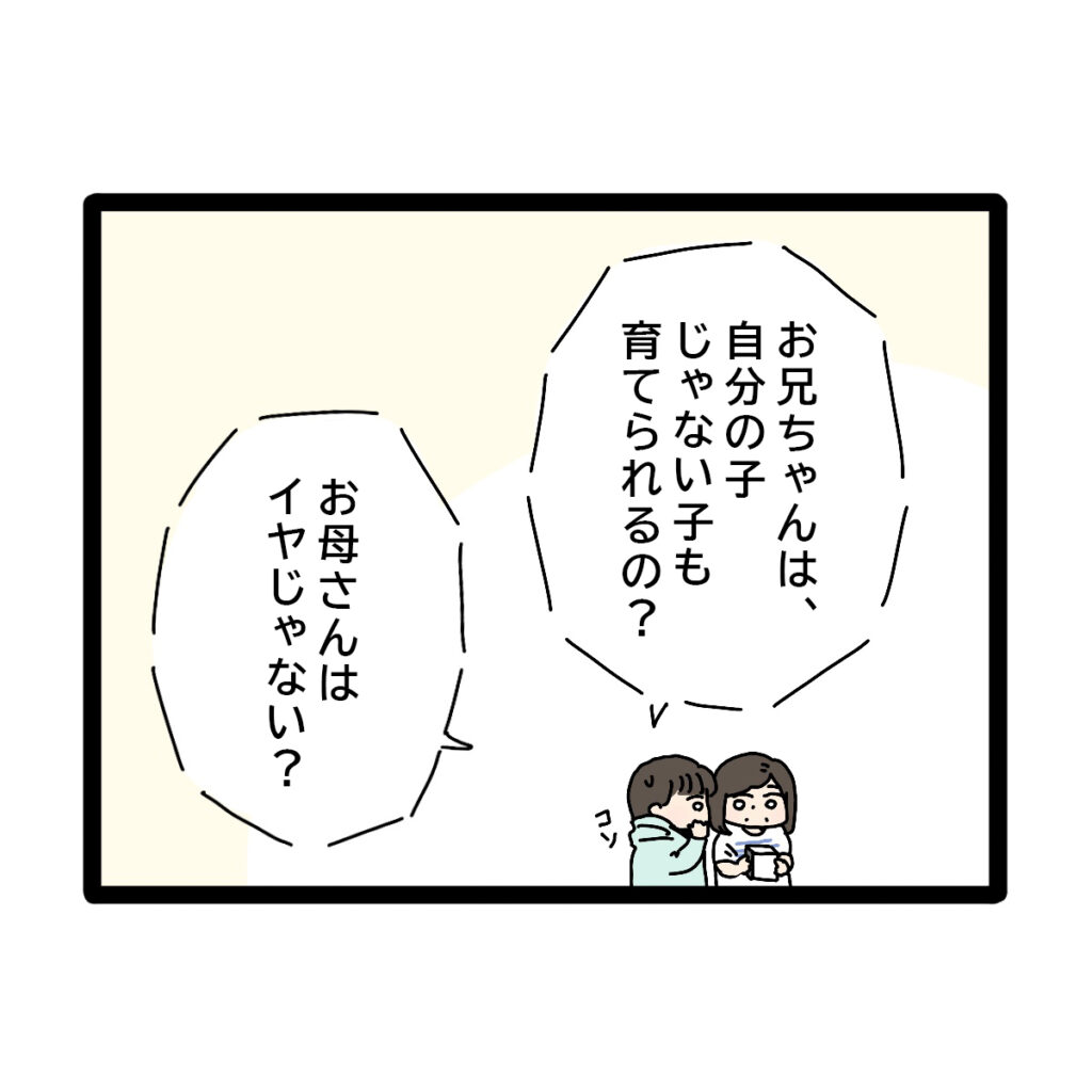 「お兄ちゃんは、自分の子じゃない子も育てられるの?お母さんはイヤじゃない?」と聞きました。