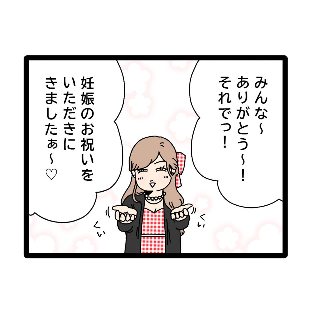 すると、「みんな~ありがとう~!それでっ、妊娠のお祝いをいただきにきましたぁ~」ときみこが言い出し、