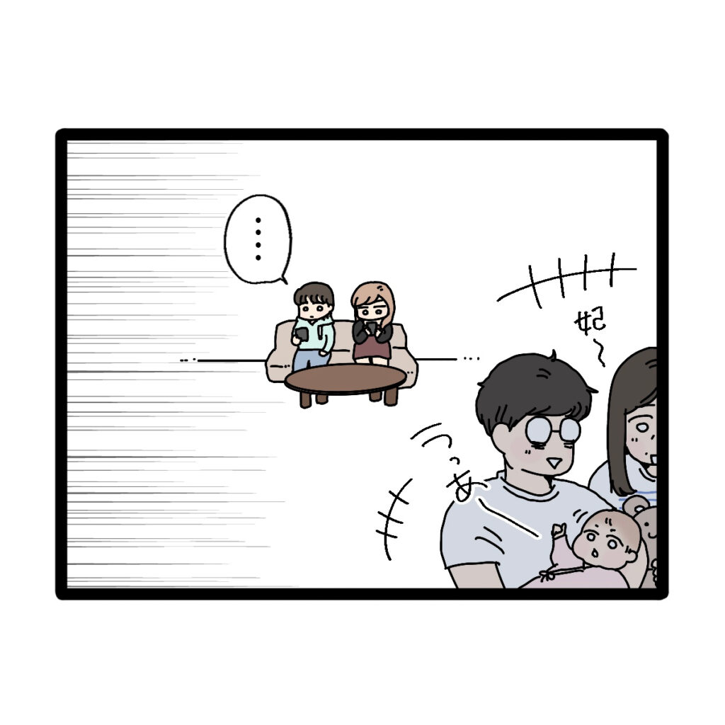 兄夫婦から連絡がないまま義姉きみこは無事出産。SNSで知って数か月が経った頃、兄ときみこがやって来ました。一層ボロボロになった兄を家族で心配していると、「そんなことより」ときみこが出産のお祝いをせがみ出し、家族はドン引き。すると時赤ちゃんが泣き出して、慌てて兄がミルクを作ろうとするも、きみこはソファに座りスマホを触っているだけ。そんな光景に思わず絶句してしまいました。