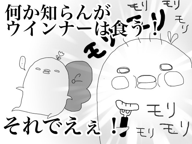 食べ遊び悩みますよね・・・そして、たどり着いた答えウィンナー様!モリモリ食べるのが一番ですよね!