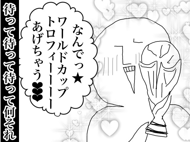 まさかのトロフィー!?ワールドカップ愛すごいですね~!マチ子ちゃんのサッカーセンスにパパさんうっとりですね!
