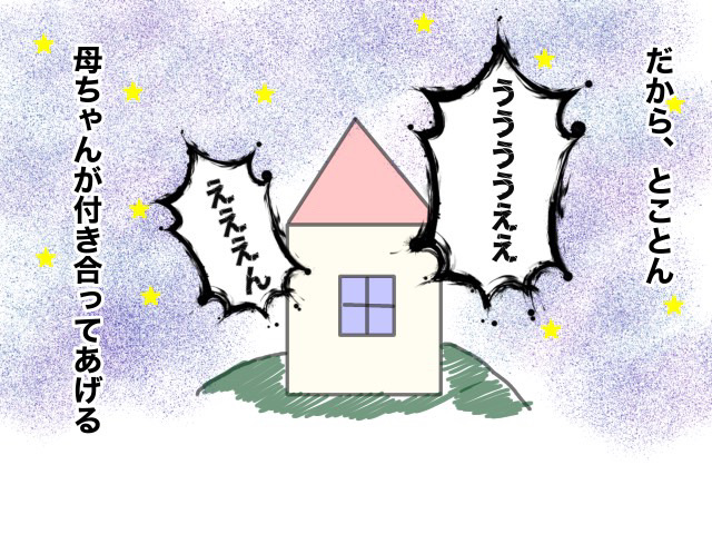そうですよね。大人でも自分でどうしようもできないときがありますもんね。早く寝かせなきゃと焦ってしまう気持ちもありますが、アツアゲさんのように子どもの気持ちに寄り添い気が済むまでとことん付き合ってあげる日も必要なんだろうなと思いました。