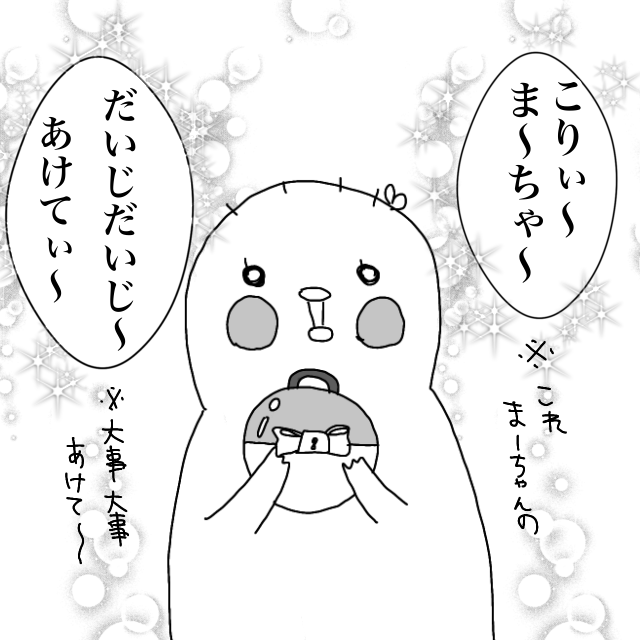 鍵付きの宝物入れに大切なものを入れているマチ子ちゃん。「あーけーてー」とアツアゲさんのもとにやってきましたが・・・?