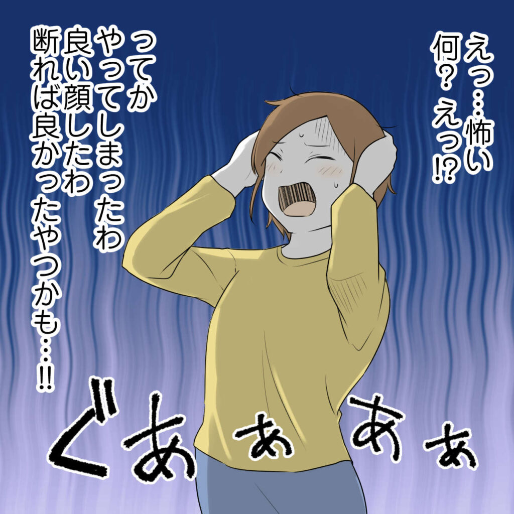 えっ・・怖い。何?えっ!?子どもの保育園が同じだったという共通点しかなくて、しかも卒園以来会うこともなく連絡も取り合っていなかったのに・・突然訪ねてきたと思ったらカンパのお願い??ハルちゃんママの行動は全く理解できないのに・・やってしまった。断ればよかったのに、ついつい良い顔をして「わかった」と言ってしまった自分を激しく悔やみました。