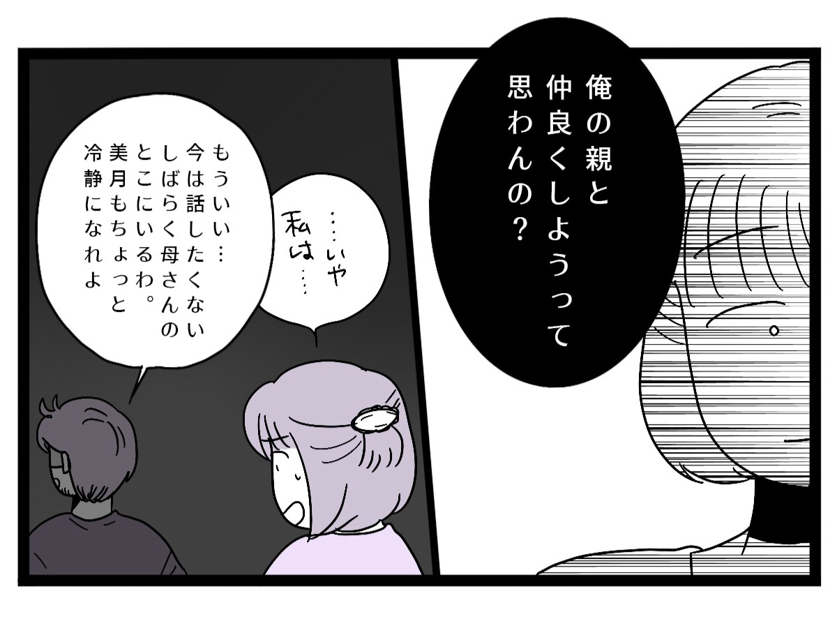 [15]夫は母依存|夫婦の話し合いを避け義実家に逃げ込む夫に幻滅。義母を締め出し2人きりで向かい合い詰め寄る