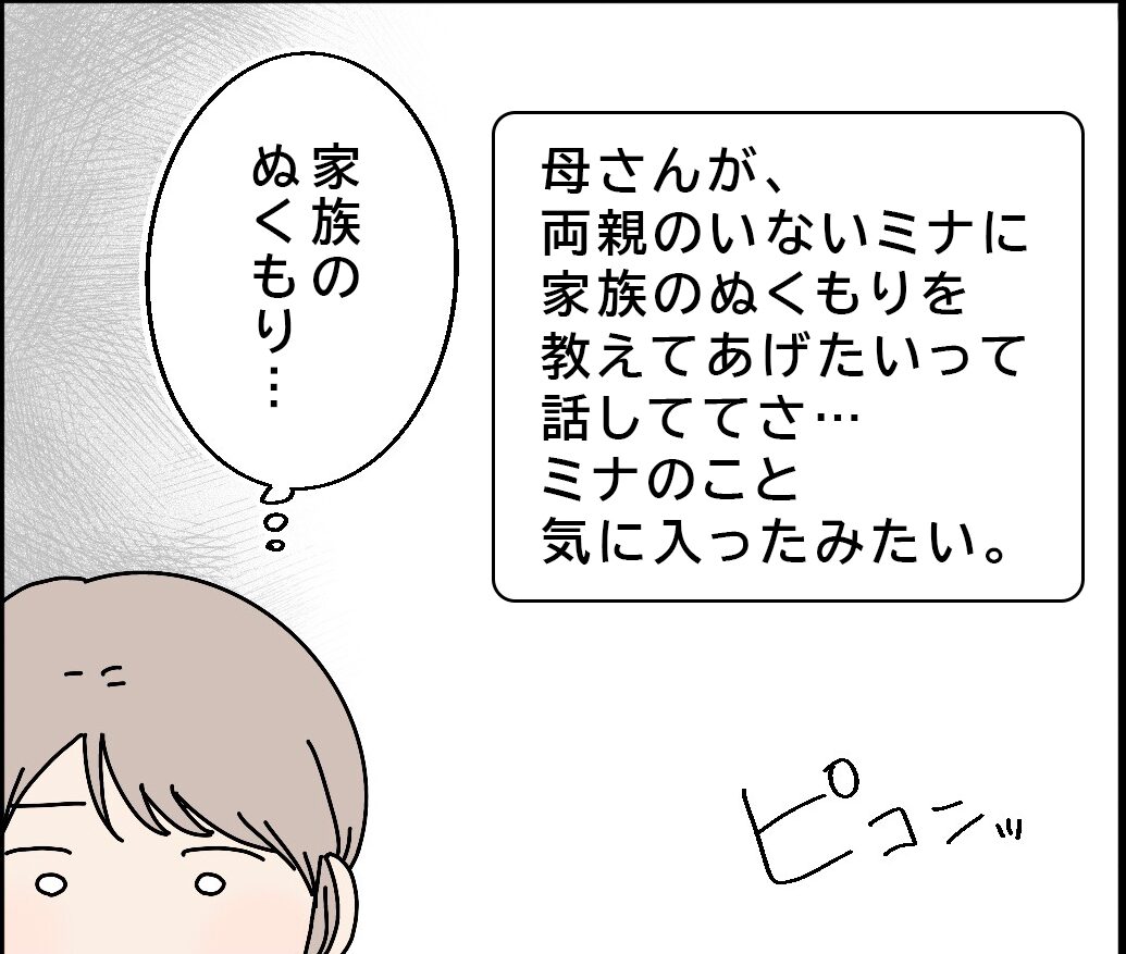[4]嫁いびり義母|「家族のぬくもりを教えてあげたい」夫経由で義母の言葉を聞きモヤモヤが止まらない