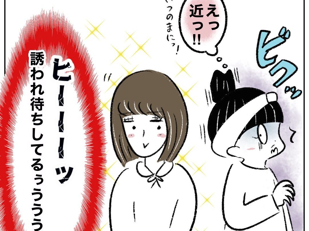 [34]聞き耳を立て接近「えっ近っ!誘われ待ちしてるぅう!」密かに佇む執着ママにロックオンされた話|まるの育児絵日記