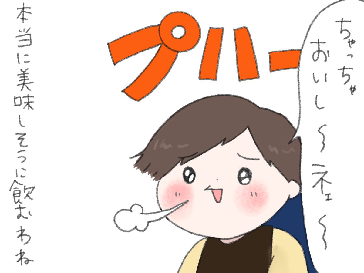 プハー!と大人顔負けの飲みっぷり!なんとも美味しそうにお茶を飲む2歳息子|ねむりひつじの子育て絵日記
