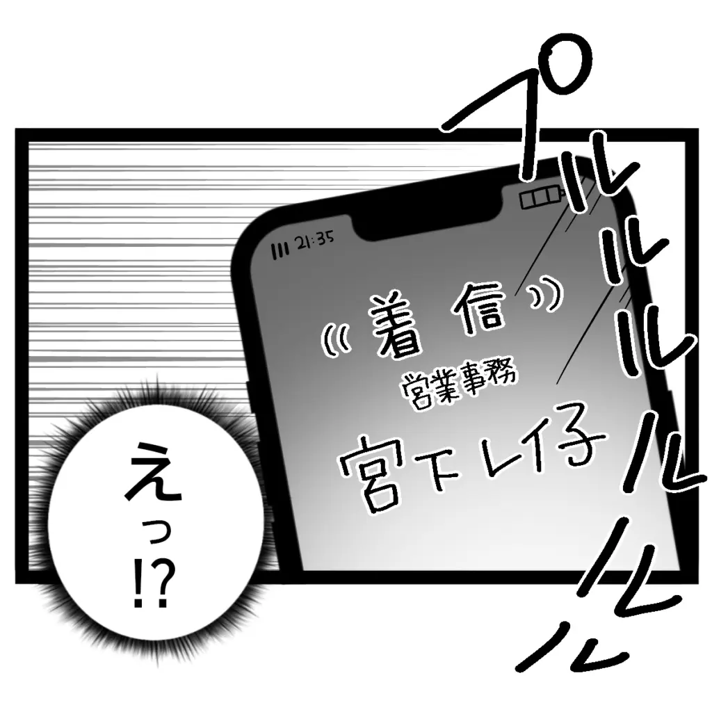 着信画面に表示された名前は「宮下レイ子」女性の名前です。えっ!?今は夜21時半過ぎ。こんな時間に女性から電話がかかってくるなんて・・やっぱりまさひでは浮気してるの??一気に悪い想像が膨らみます。