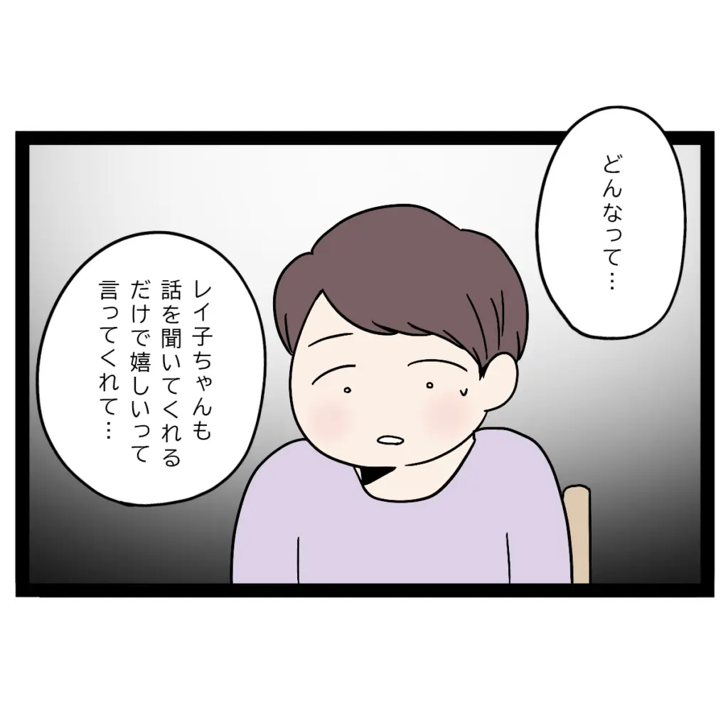 すると、「どんなって・・。レイ子ちゃんも話を聞いてくれるだけで嬉しいって言ってくれて・・」と口ごもりながら言うまさひで。