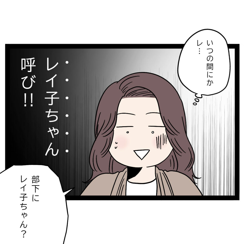 ん?聞き間違いじゃないよね??前は「レイ子さん」って呼んでたのに、いつの間にかレ・・レイ子ちゃん呼び!!思わず「部下にレイ子ちゃん?」と突っ込むと、