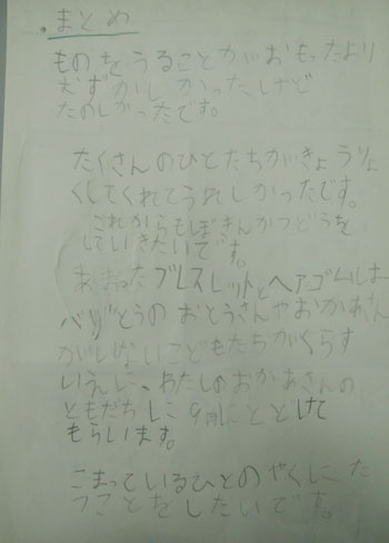 クラスのみんなが、募金という言葉に興味をもってくれたことを嬉しそうに話してくれました。