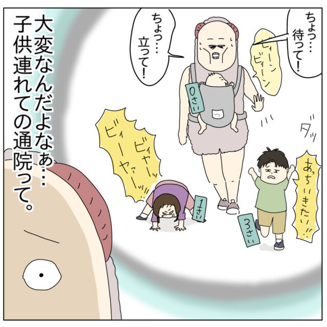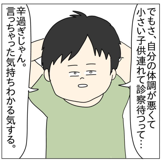 人目がある所で怒鳴ることがどんなに自分でも嫌なことか、それでも出てしまう感情。それほど体調不良時の子連れ通院が辛いってことが、私にはわかる。
