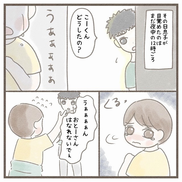 今回のお話では、こーくんが夜中に起きてきたようです。